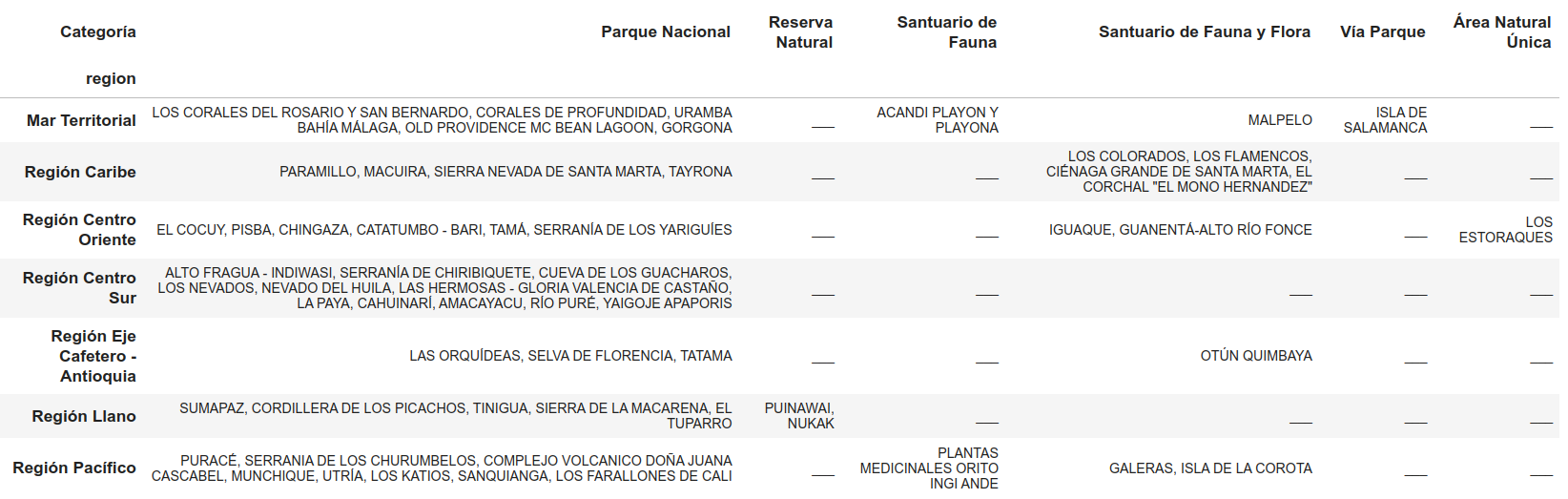En las regiones del centro-oriente, sur y sur-occidente del país, existen un considerable número de parques naturales con poca o nula infraestructura turística. Al conectarlos por vía aérea, terrestre o marítima, brindando seguridad, ampliará la oferta de destinos en el país diversificando el portafolio de servicios turísticos que no solo compitan; sino que también inviten a extender la duración de la estadía de los huéspedes.
